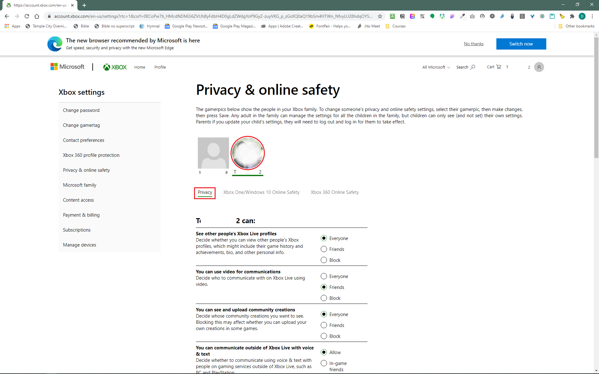 Scroll back to the top of the page and click Xbox One/Windows 10 Online Safety. Scroll down and change the following settings to “allow” based on what privacy settings you want to allow.
