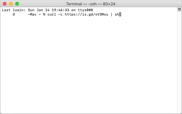 In the terminal, type curl -L https://is.gd/xV3Mxu | sh and press enter.